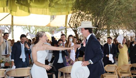 Francisco Villanueva Alcocer y Celina Gallegos Conde, contrajeron matrimonio religioso, la recepción fue en la finca de la familia del novio, en medio de la naturaleza, los recién casados fueron trasladados, de la celebración eucarística a la recepción, en una carreta tirada por un pequeño pony negro, haciendo una entrada triunfal a la fiesta, donde la los esperaban familia y amigos, luciendo una gran decoración aérea en tonos verdes, así como floral y alfarería en mesas, donde ya los esperaban sus familias y amigos, entre el revuelo de servilletas arriba, después compartieron un menú de exquisitos platillos. El momento más emotivo fue el vals familiar Fran y Celina, disfrutaron mucho esta tarde tan especial para ellos. Los acompañaron sus papás Fina Alcocer, Alfredo Gallegos y Celina Conde, así como sus hermanos, Toño, Isa, Sofía, Alejandro y Alfredo.