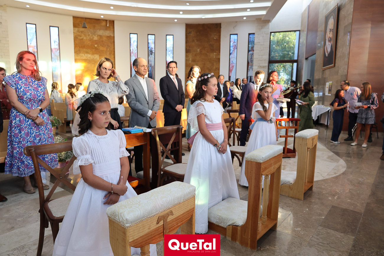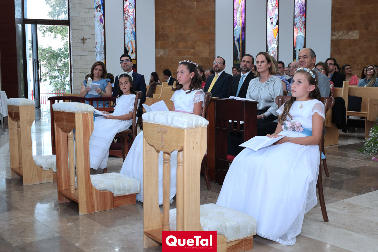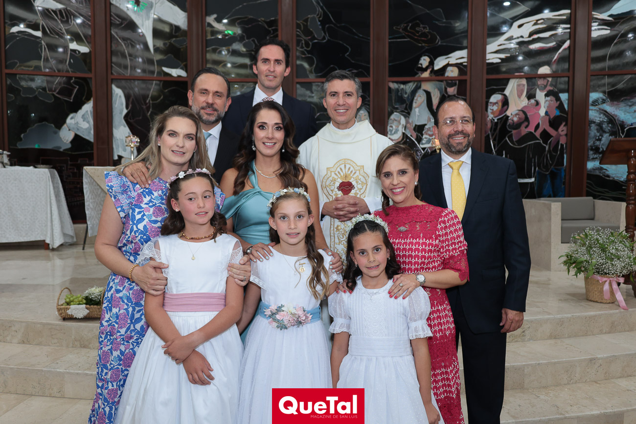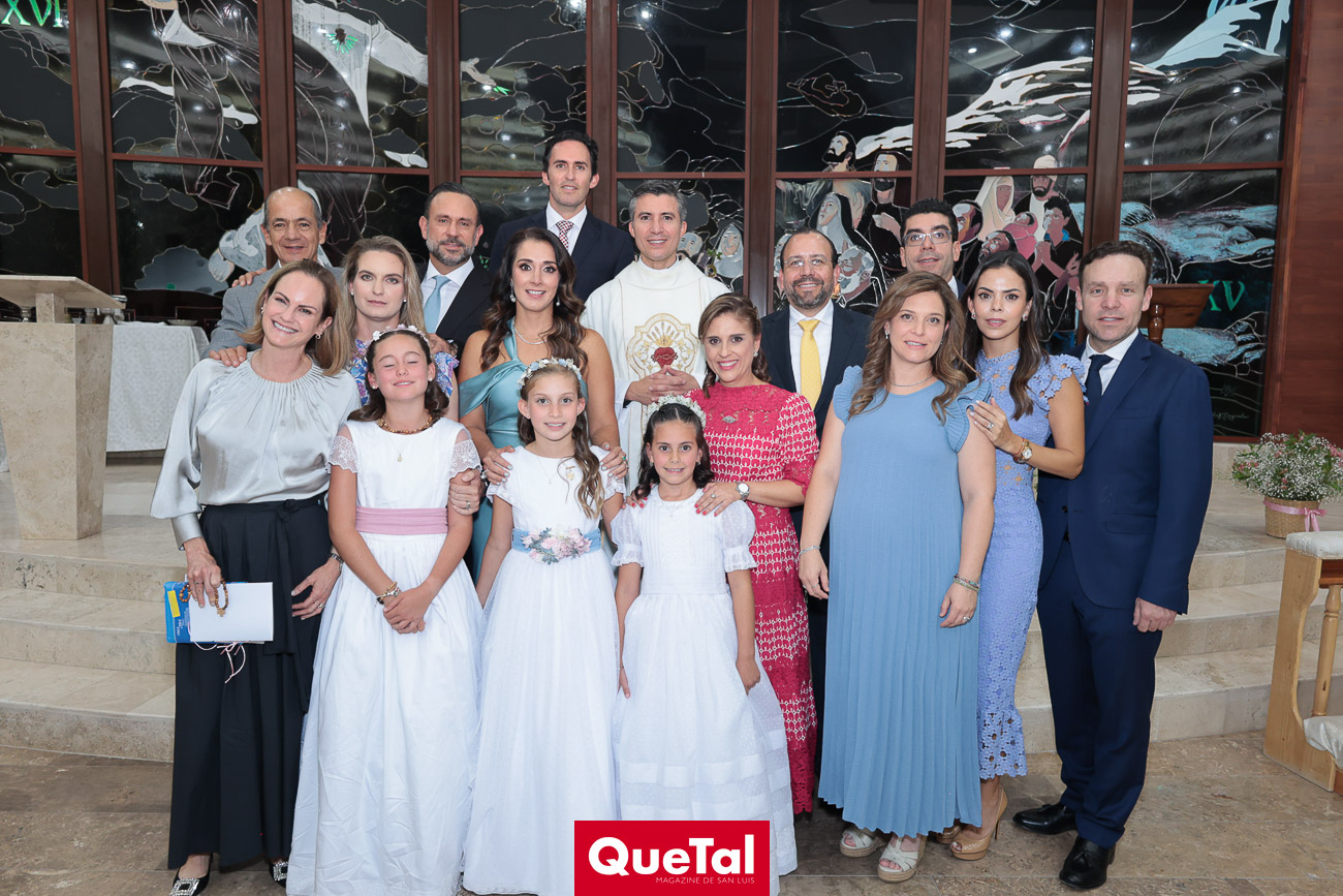 Alika Torres, Elena Martínez e Inés García recibieron el Sacramento de la Primera Comunión, las acompañaron sus papás, Hanni Abud y Carlos Torres, Judith Gómez y Edgardo Martínez, Maricarmen Aldrete y Humberto García así como sus padrinos, abuelos, tíos, primos y amigas. Después de la ceremonia religiosa, celebraron este importante acontecimiento en Wamani Camp.