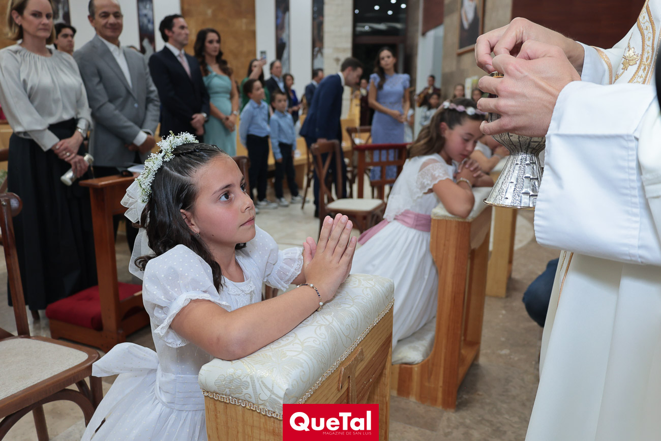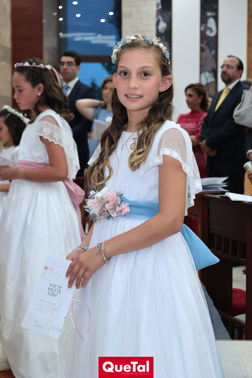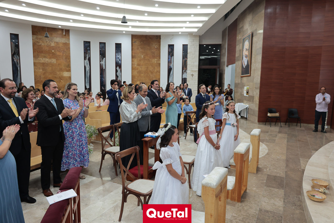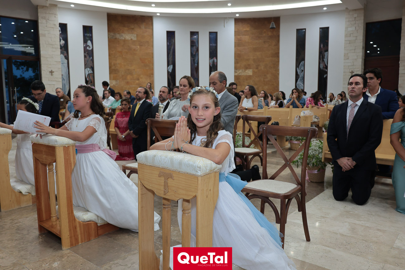 Alika Torres, Elena Martínez e Inés García recibieron el Sacramento de la Primera Comunión, las acompañaron sus papás, Hanni Abud y Carlos Torres, Judith Gómez y Edgardo Martínez, Maricarmen Aldrete y Humberto García así como sus padrinos, abuelos, tíos, primos y amigas. Después de la ceremonia religiosa, celebraron este importante acontecimiento en Wamani Camp.