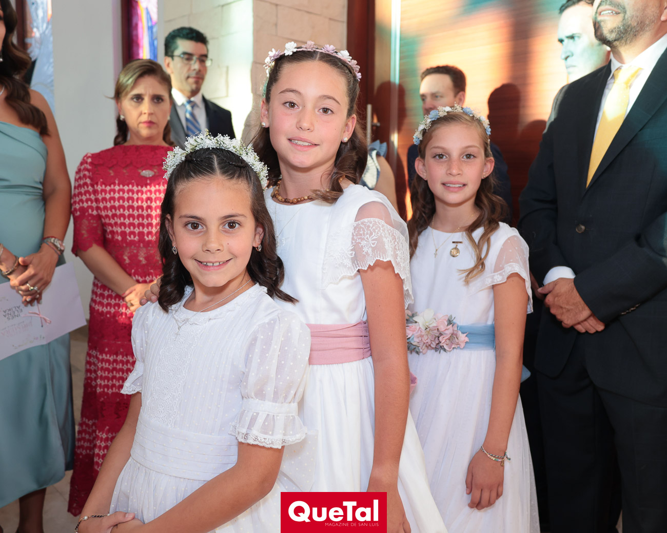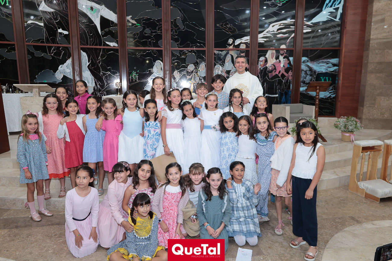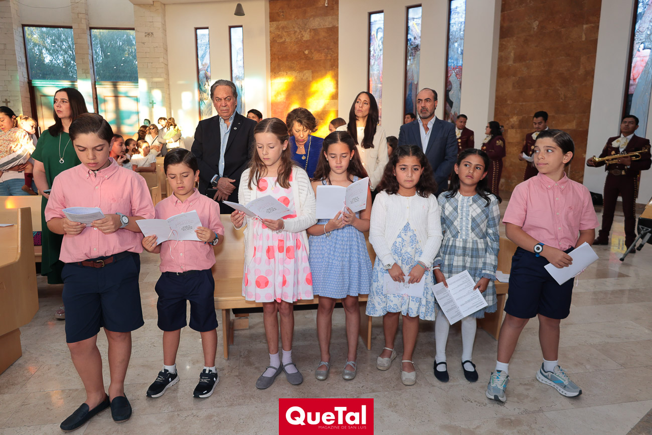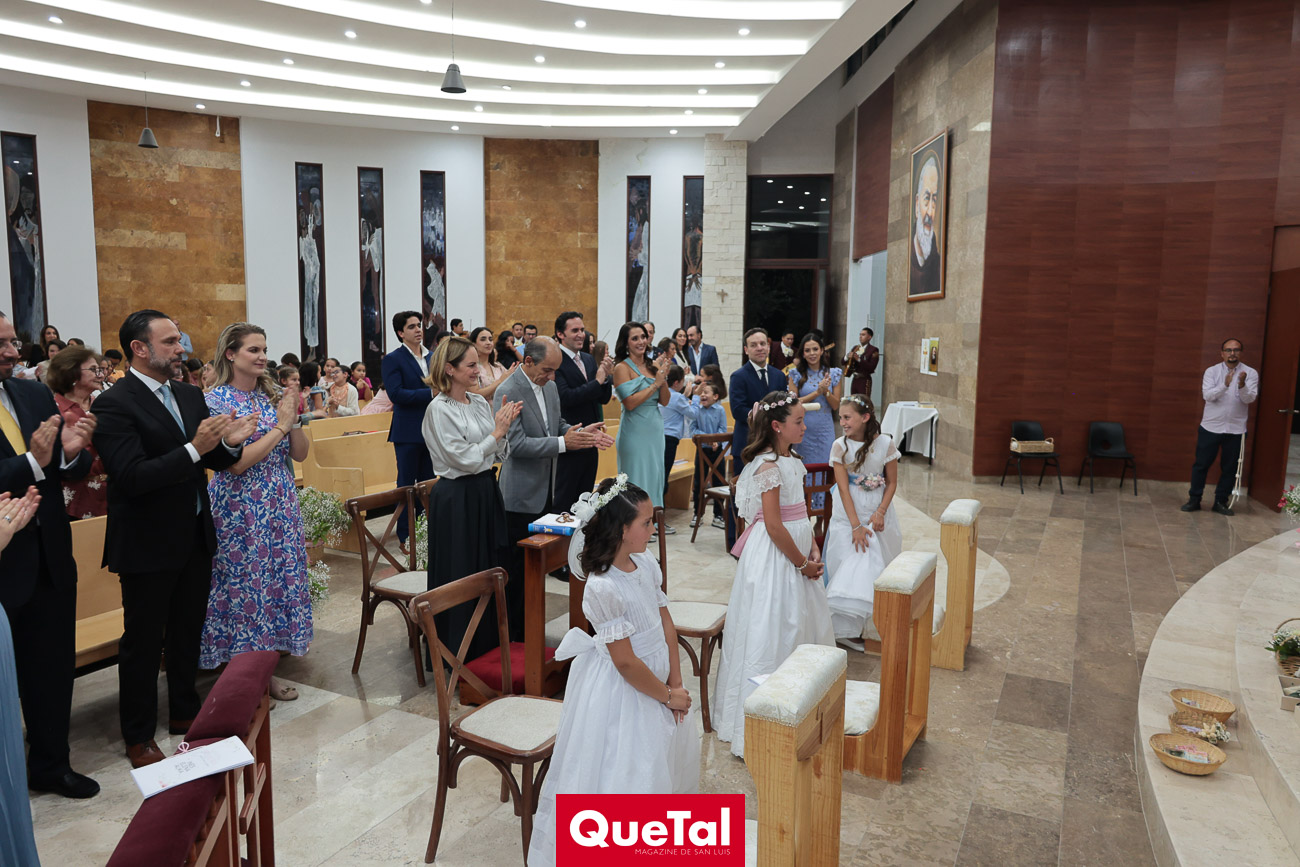 Alika Torres, Elena Martínez e Inés García recibieron el Sacramento de la Primera Comunión, las acompañaron sus papás, Hanni Abud y Carlos Torres, Judith Gómez y Edgardo Martínez, Maricarmen Aldrete y Humberto García así como sus padrinos, abuelos, tíos, primos y amigas. Después de la ceremonia religiosa, celebraron este importante acontecimiento en Wamani Camp.