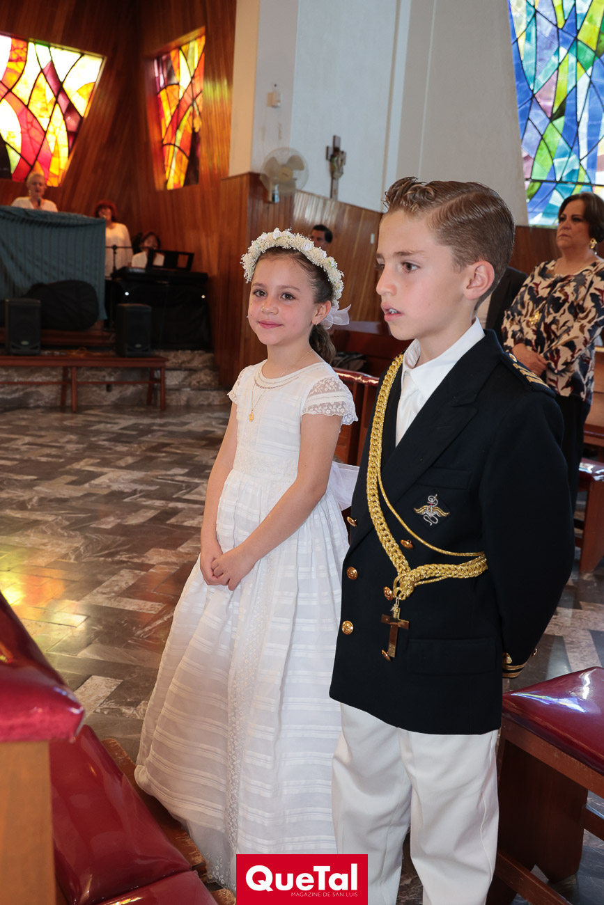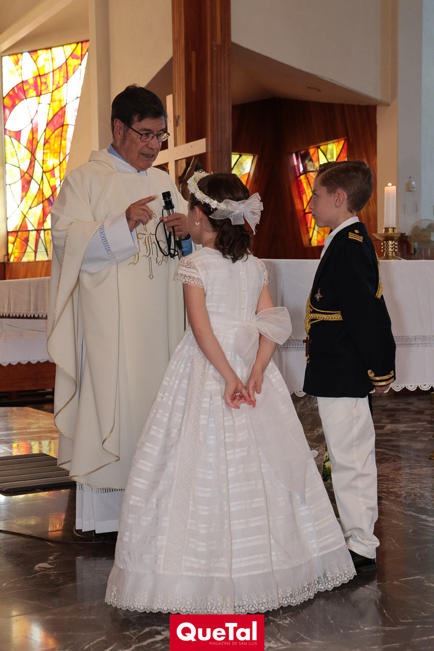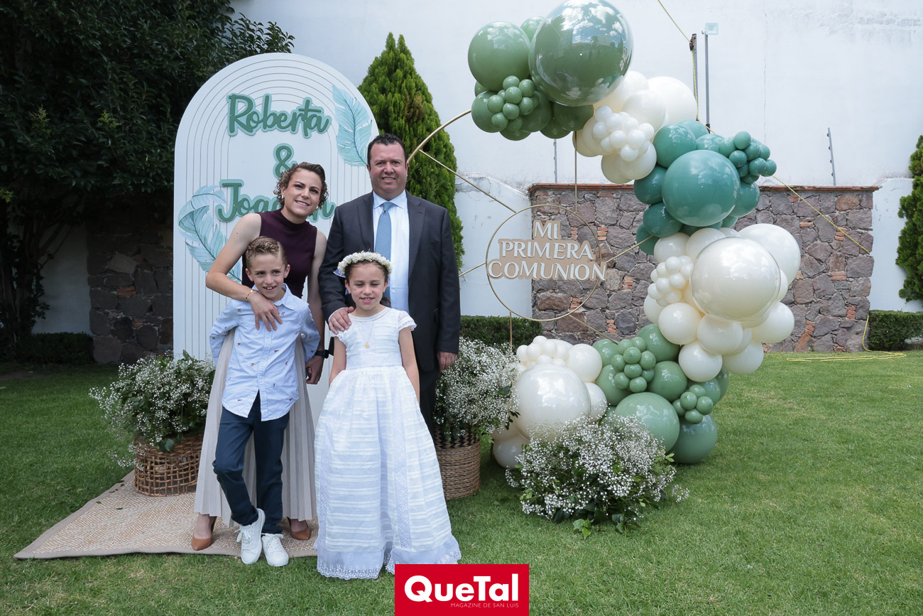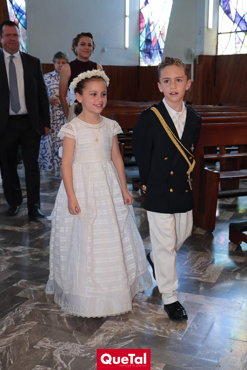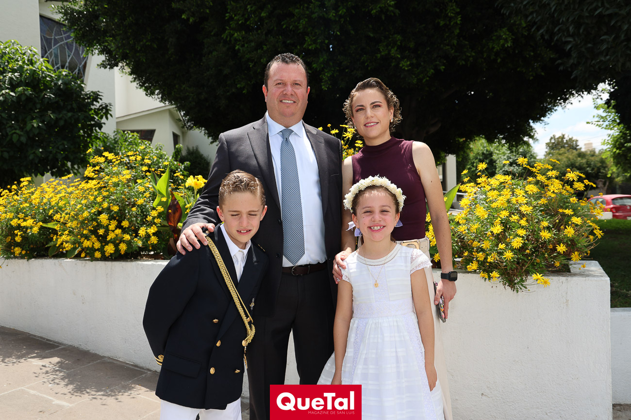 En una solemne celebración eucarística, Roberta y Joaquín Meade Foyo, recibieron el Sacramento de la Primera Comunión, acompañados en todo momento por sus papás Roberto Meade y María José Foyo y sus padrinos. Después los invitados fueron recibidos en una recepción al aire libre con una exquisita comida. Fue un día muy especial para Roberta y Joaquín quienes se divirtieron mucho con sus amiguitos.