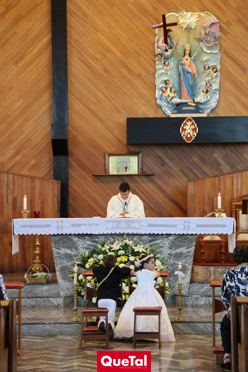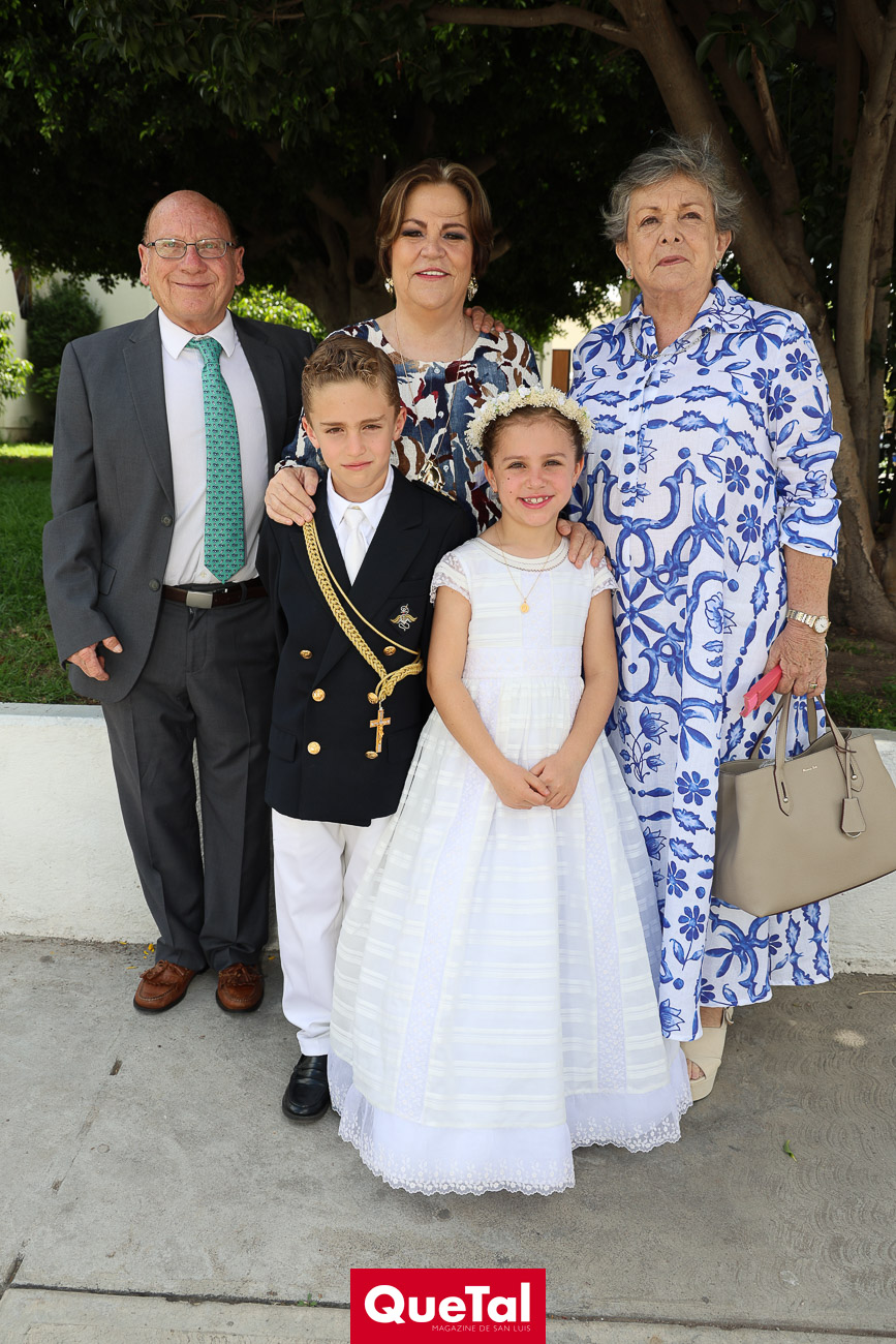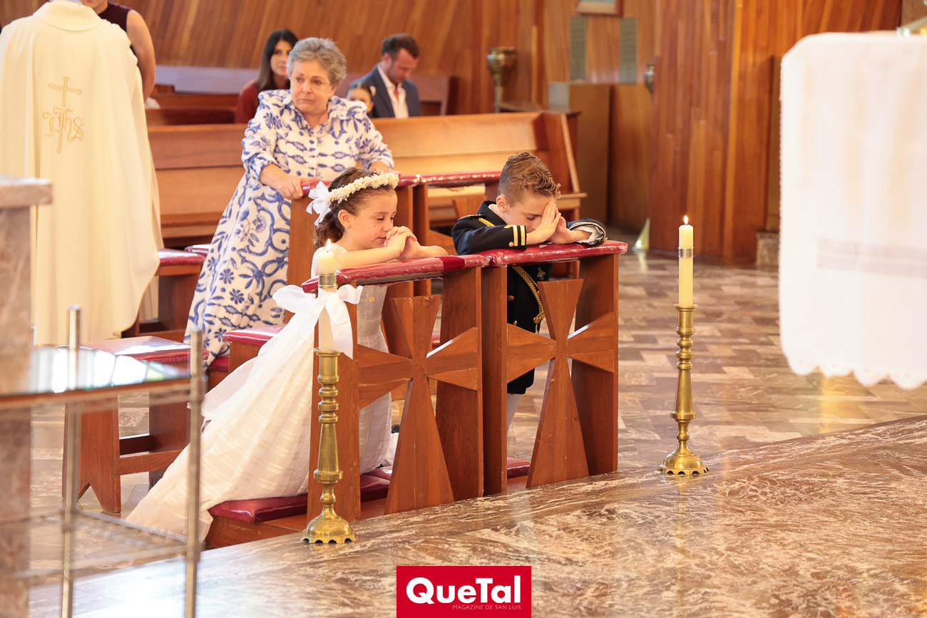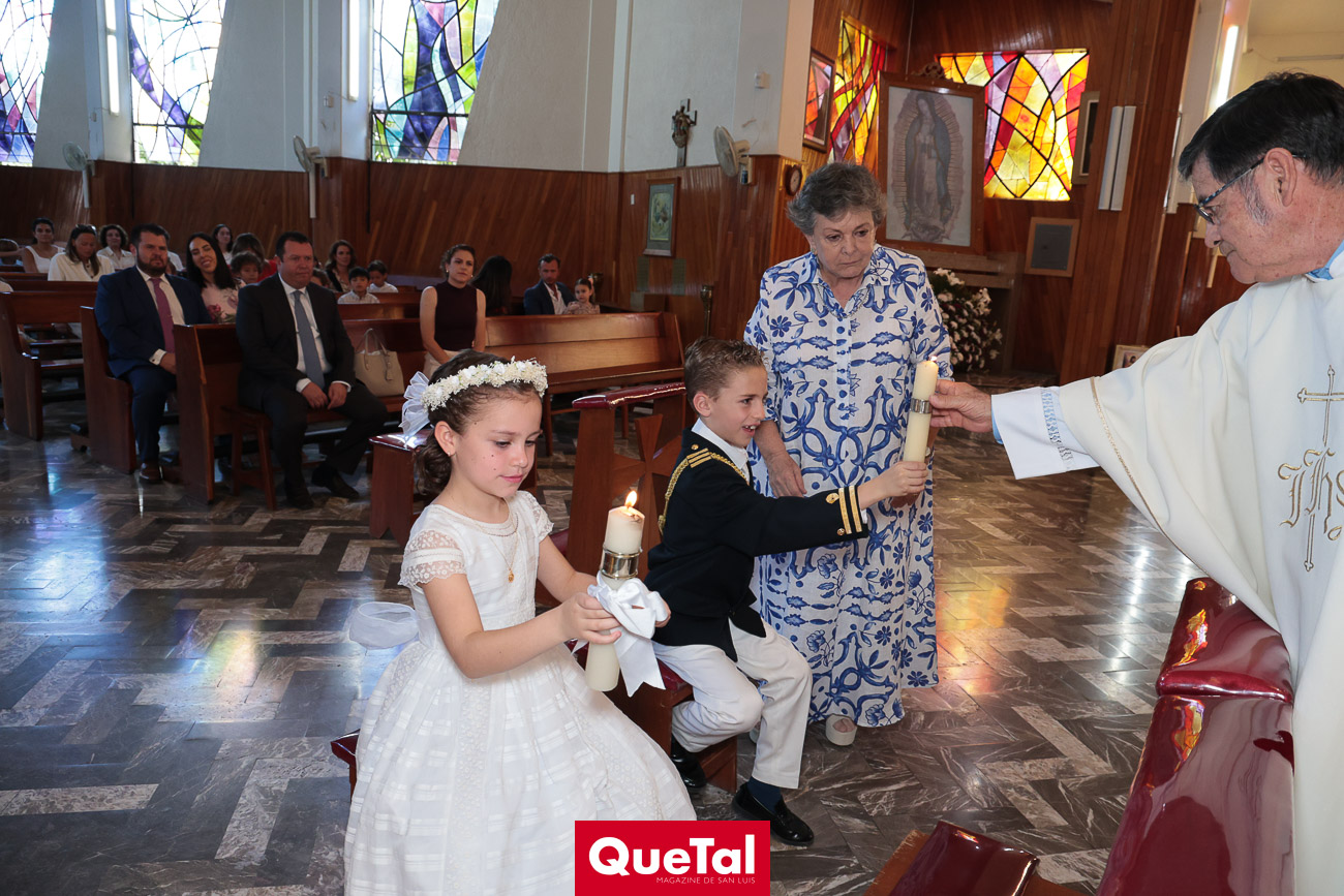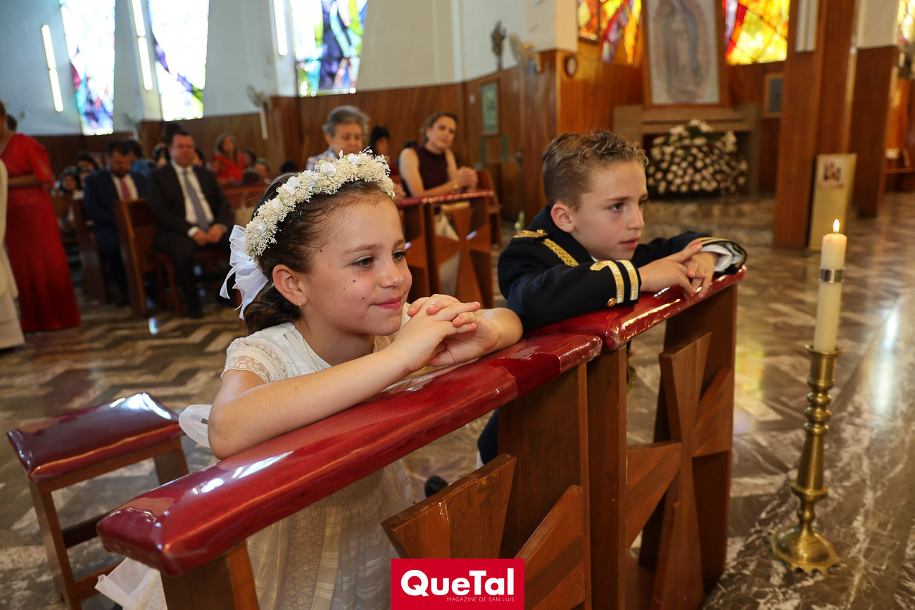 En una solemne celebración eucarística, Roberta y Joaquín Meade Foyo, recibieron el Sacramento de la Primera Comunión, acompañados en todo momento por sus papás Roberto Meade y María José Foyo y sus padrinos. Después los invitados fueron recibidos en una recepción al aire libre con una exquisita comida. Fue un día muy especial para Roberta y Joaquín quienes se divirtieron mucho con sus amiguitos.