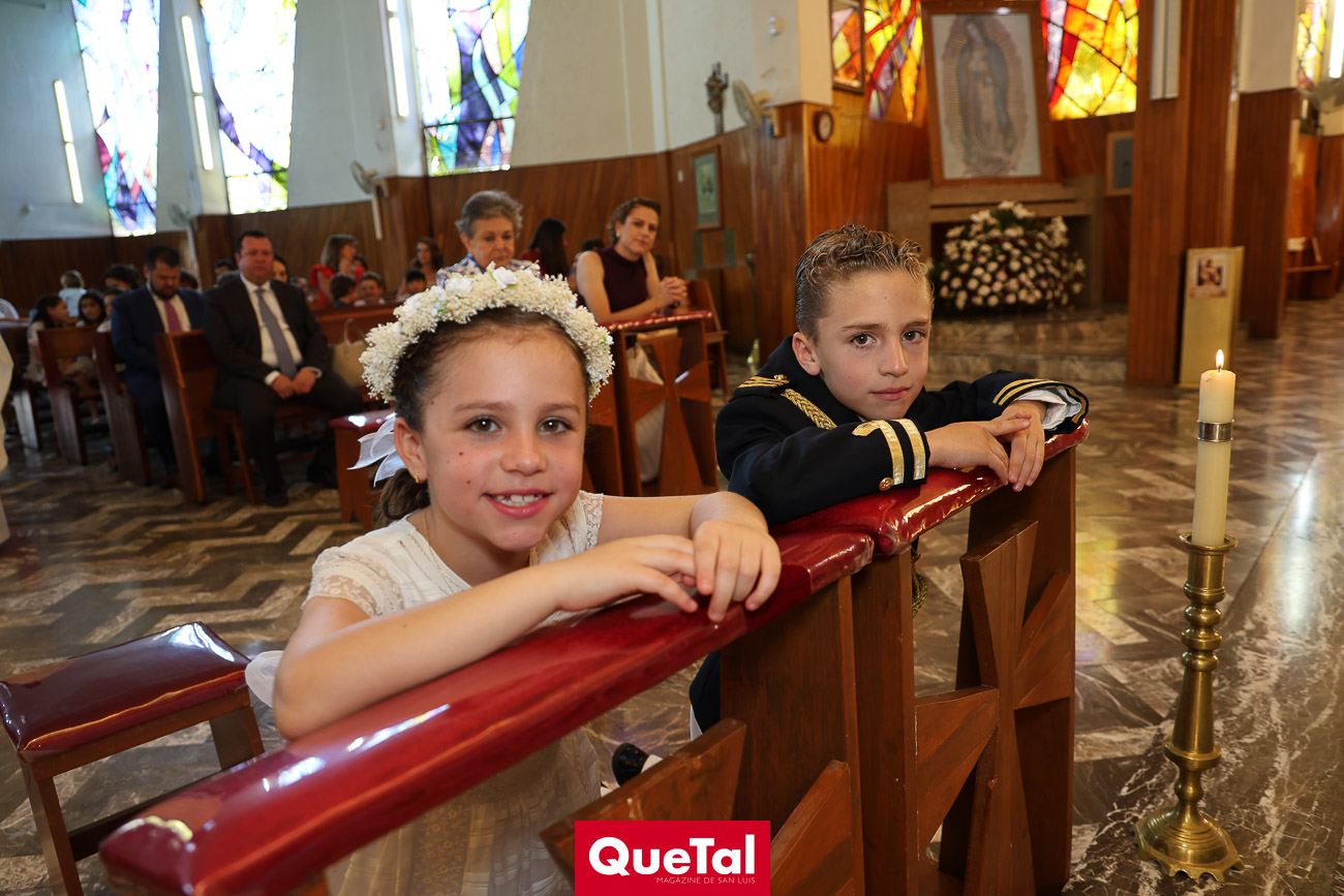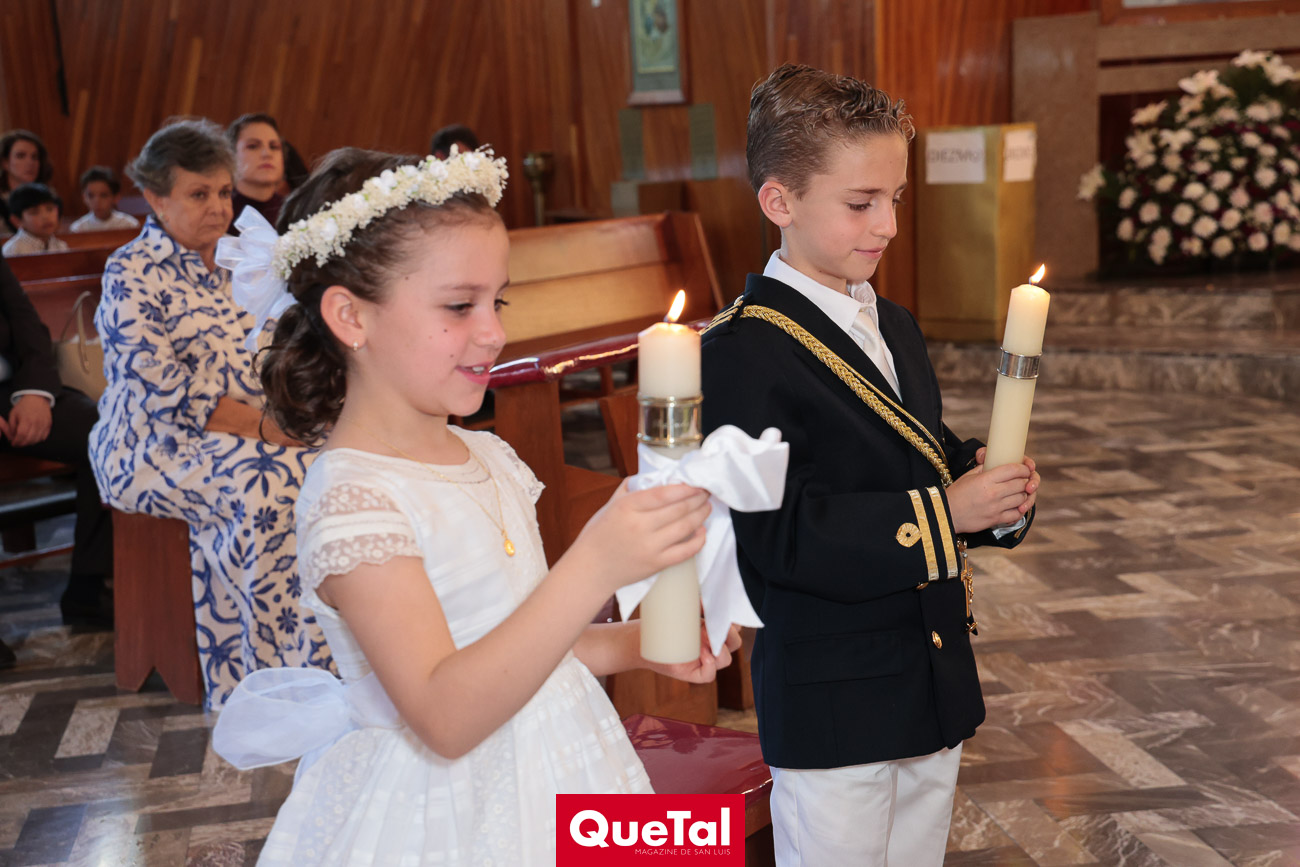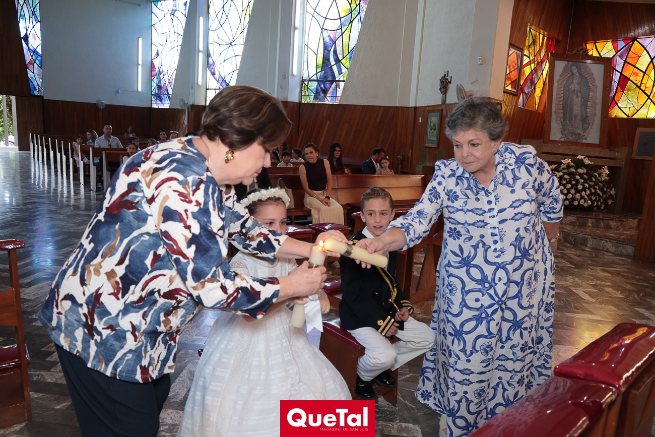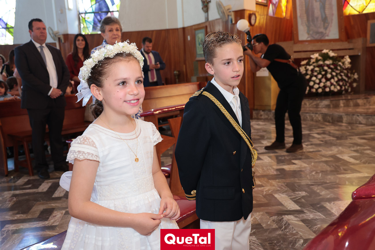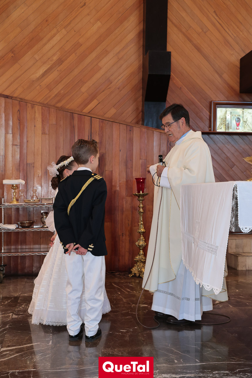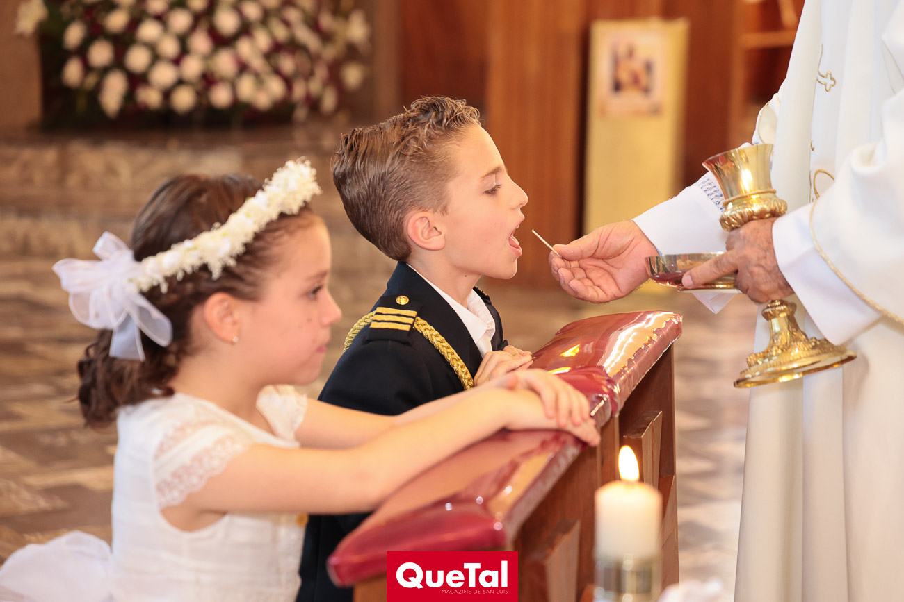 En una solemne celebración eucarística, Roberta y Joaquín Meade Foyo, recibieron el Sacramento de la Primera Comunión, acompañados en todo momento por sus papás Roberto Meade y María José Foyo y sus padrinos. Después los invitados fueron recibidos en una recepción al aire libre con una exquisita comida. Fue un día muy especial para Roberta y Joaquín quienes se divirtieron mucho con sus amiguitos.