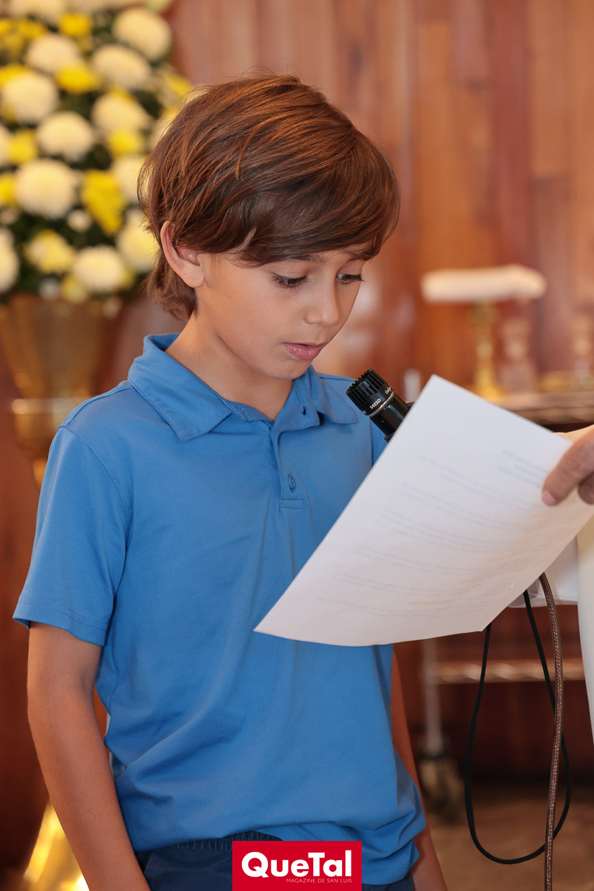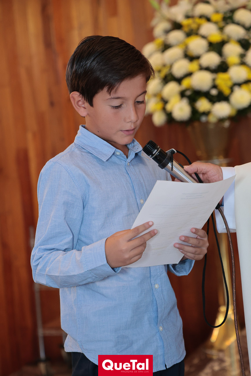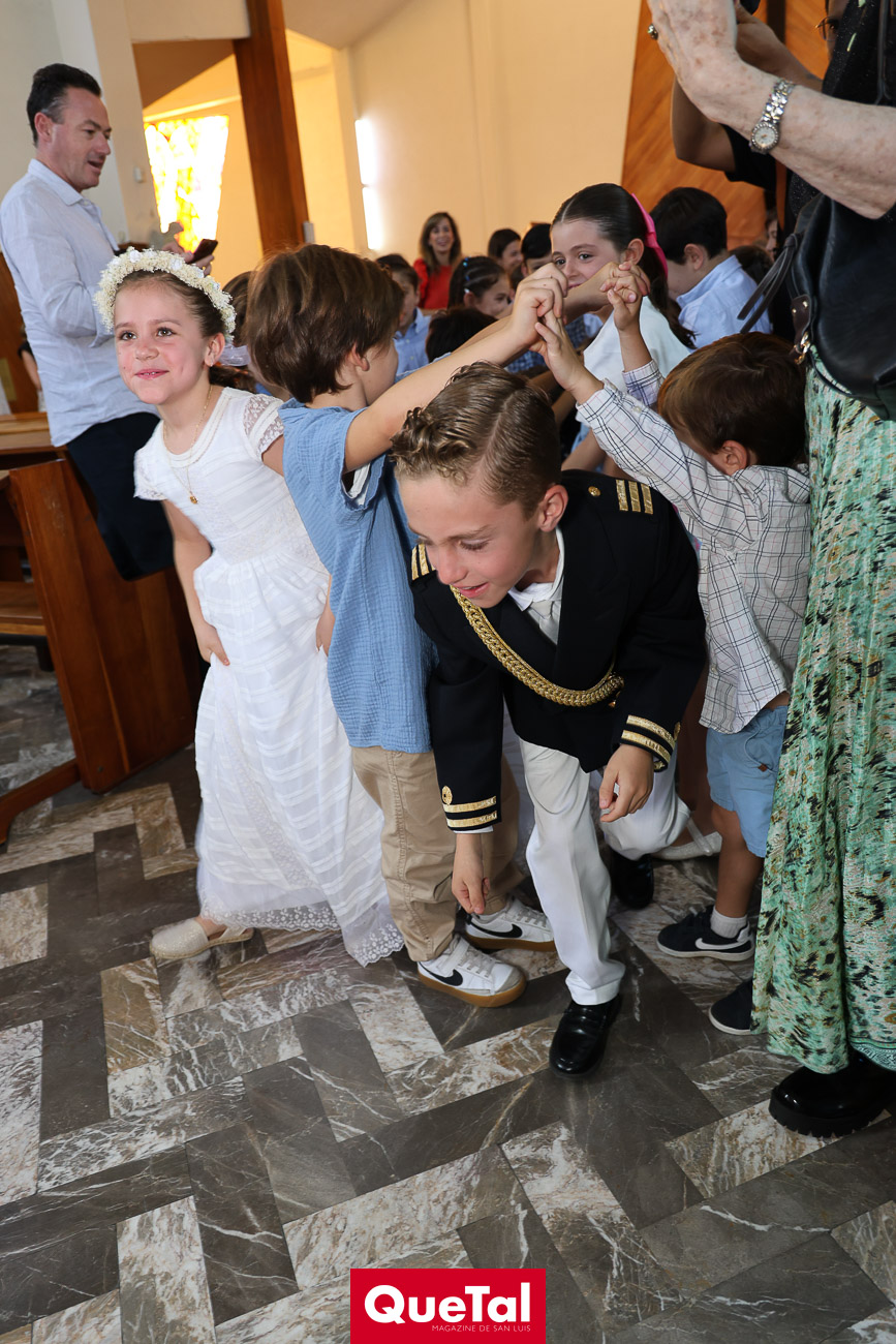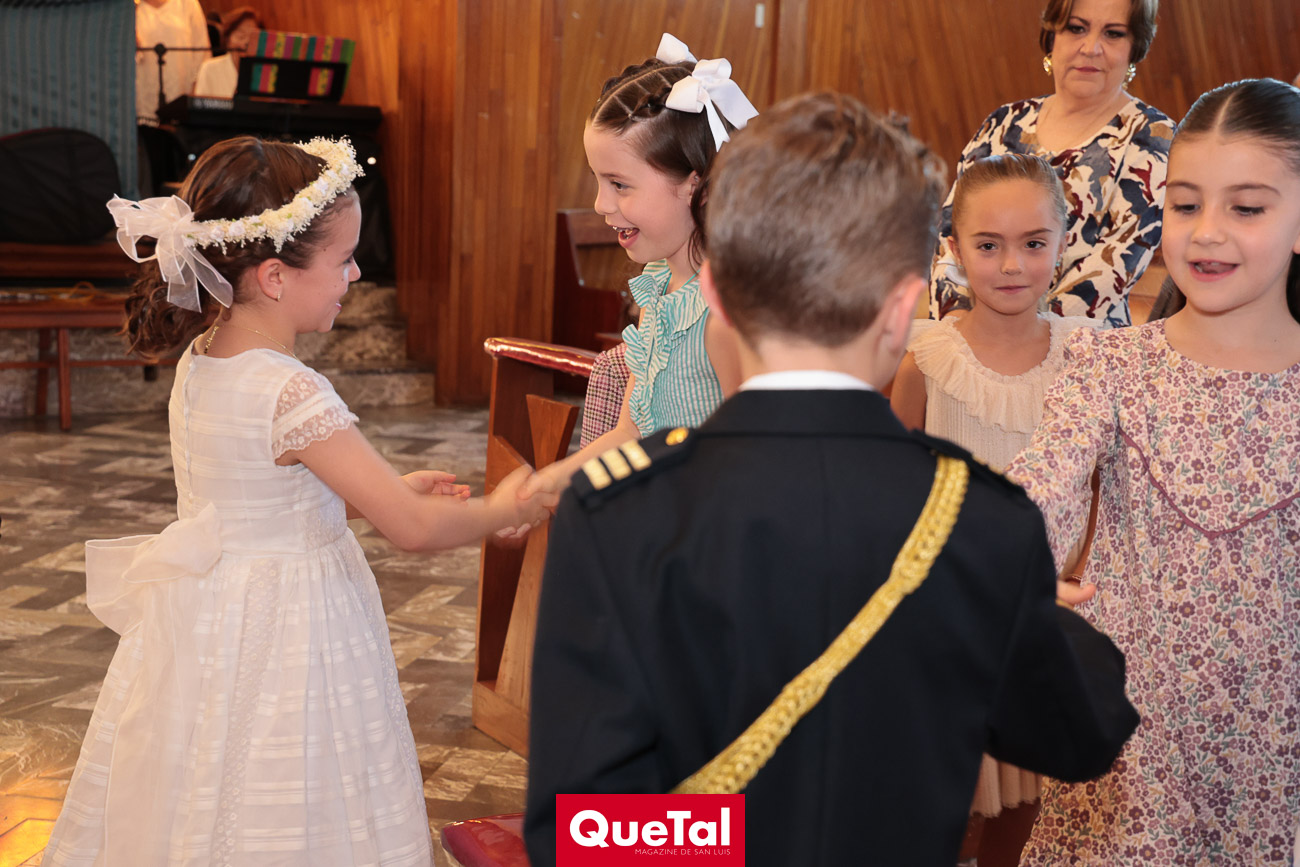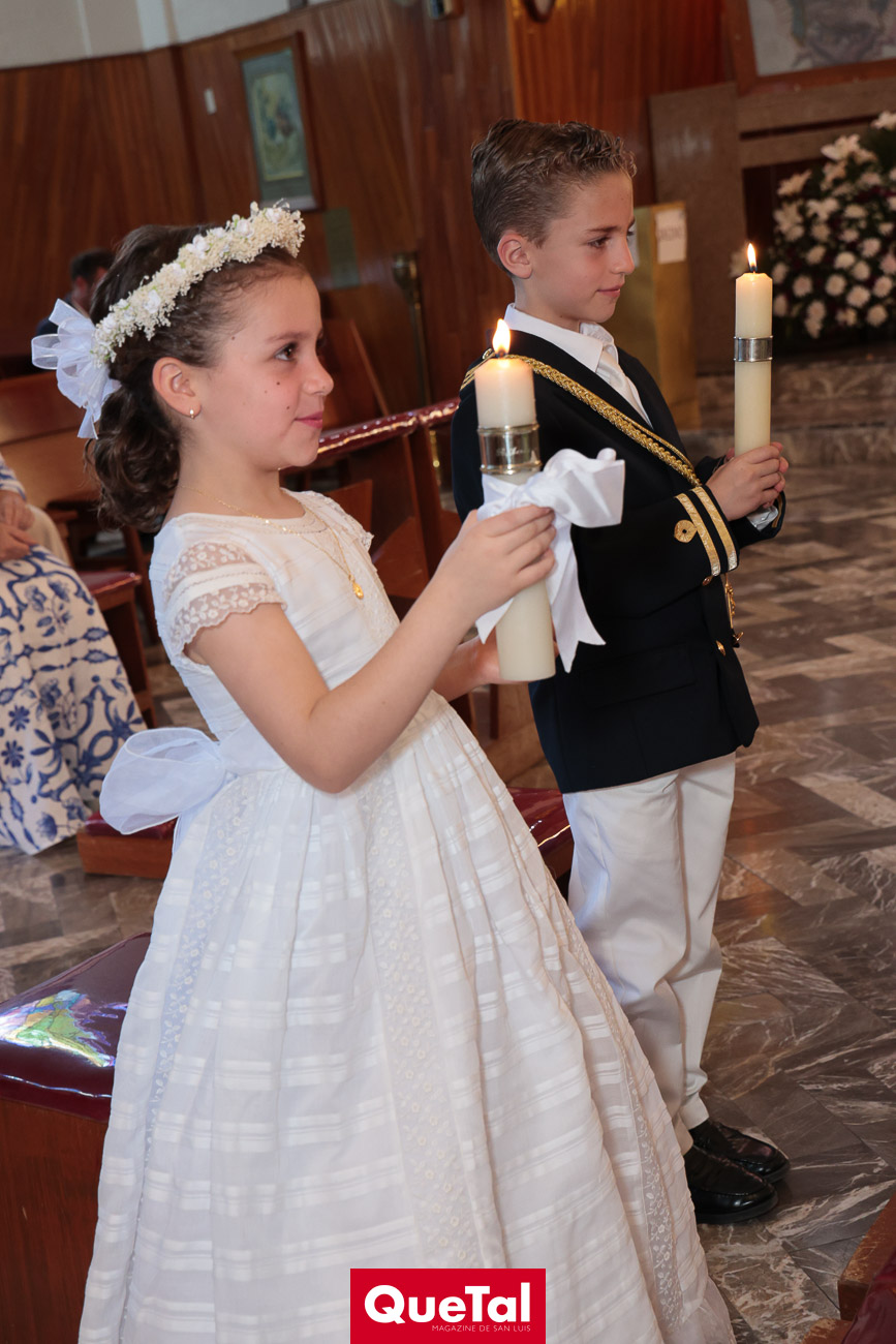 En una solemne celebración eucarística, Roberta y Joaquín Meade Foyo, recibieron el Sacramento de la Primera Comunión, acompañados en todo momento por sus papás Roberto Meade y María José Foyo y sus padrinos. Después los invitados fueron recibidos en una recepción al aire libre con una exquisita comida. Fue un día muy especial para Roberta y Joaquín quienes se divirtieron mucho con sus amiguitos.