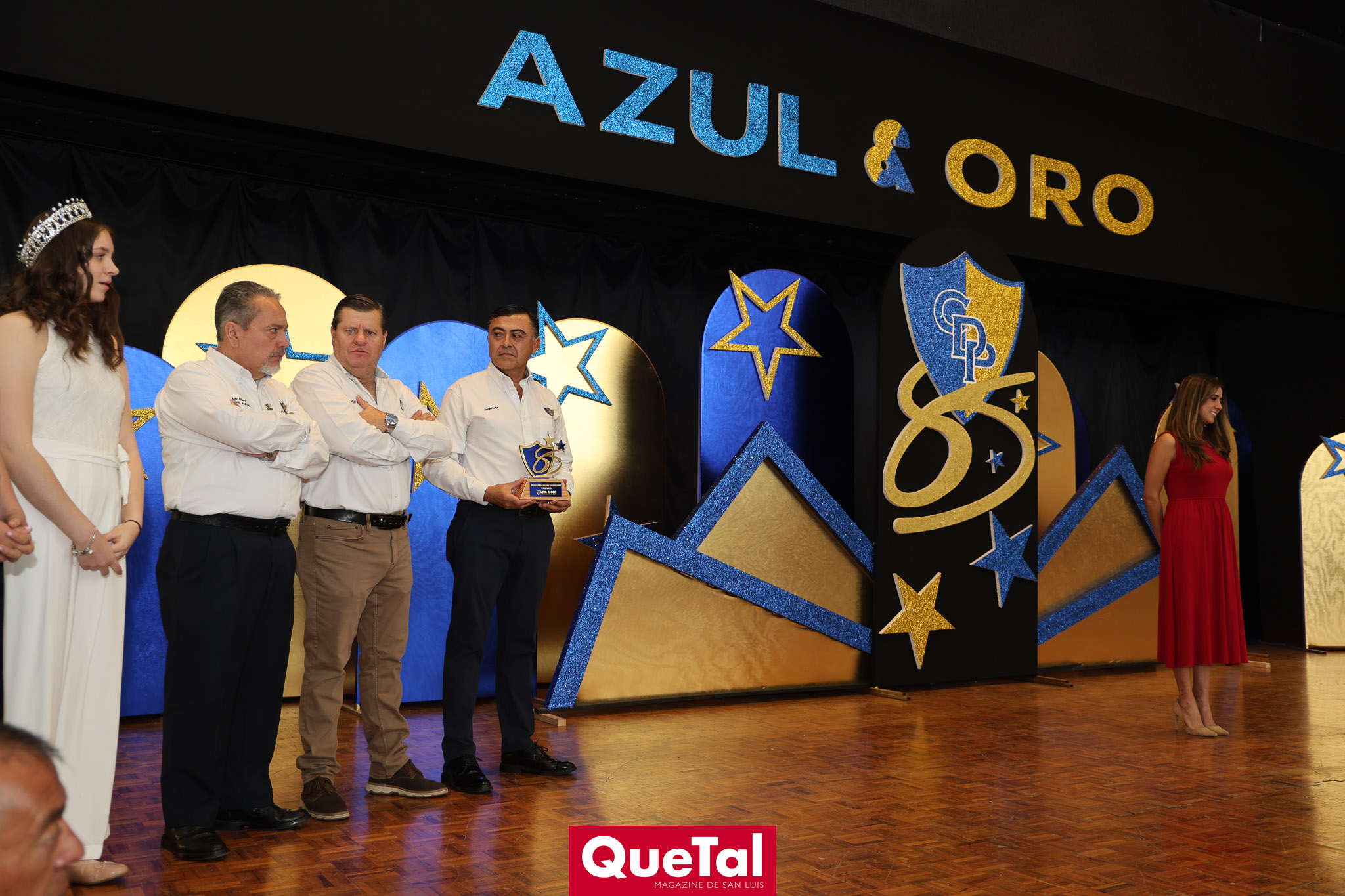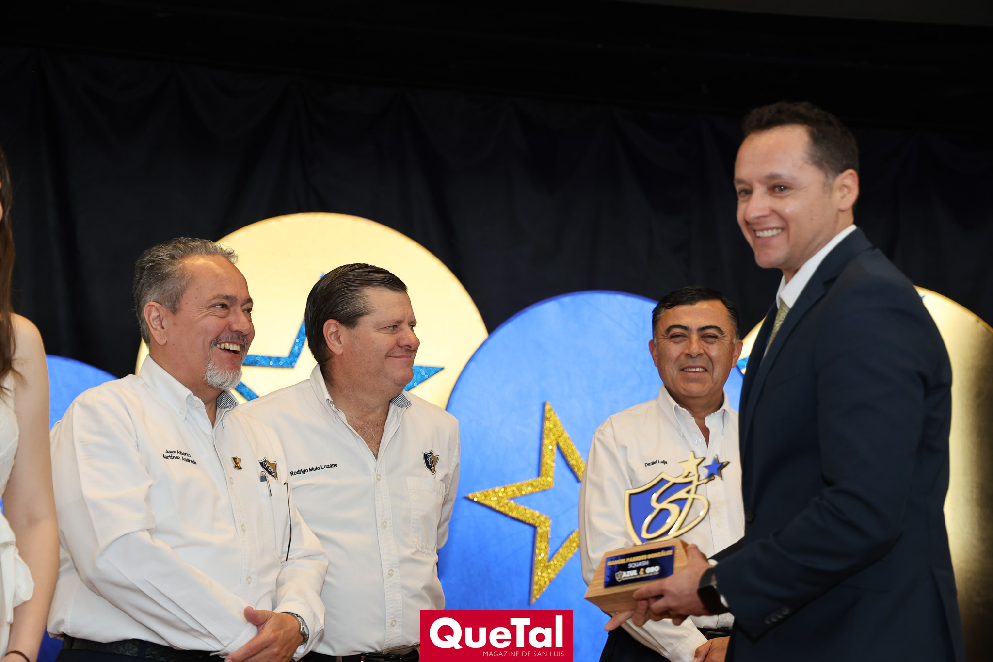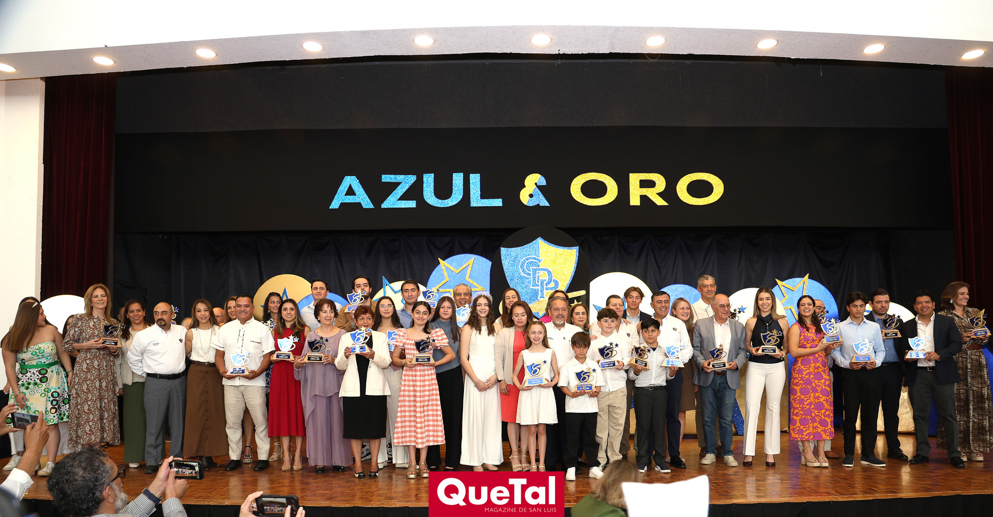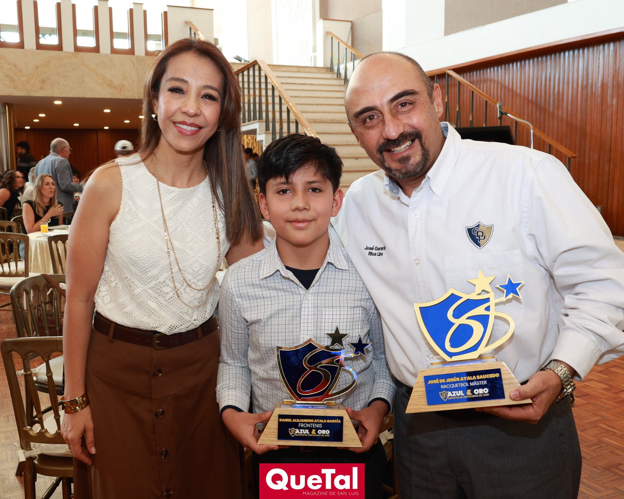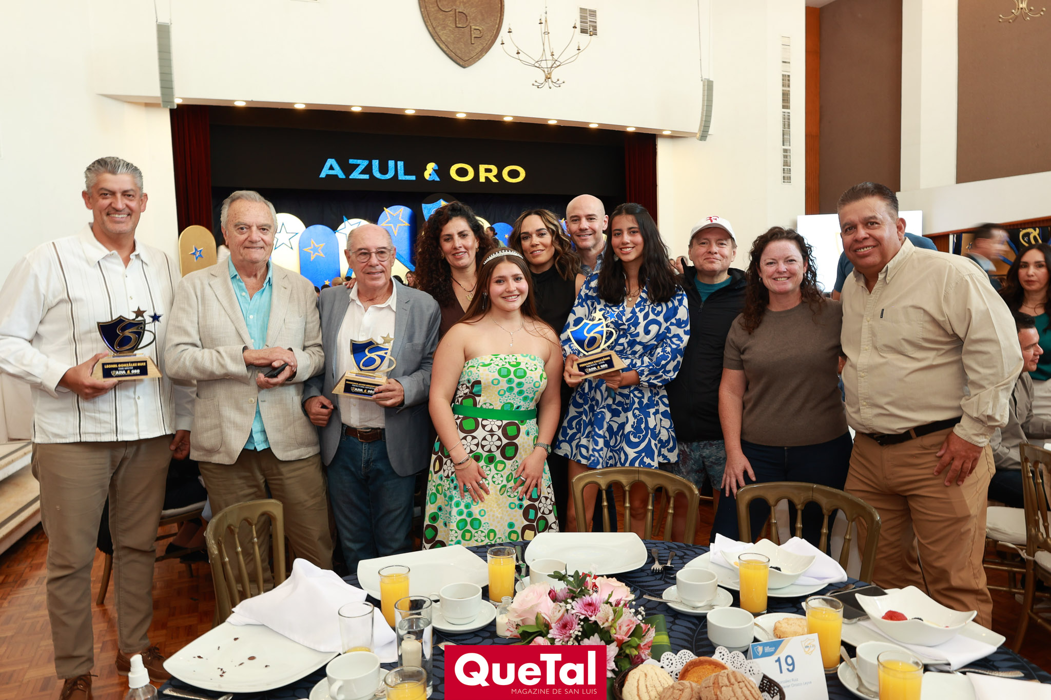 El Club deportivo Potosino llevó a cabo el tradicional evento Azul y Oro, premiando a lo más destacado del deporte del club, así como a los que han dejado huella dentro del deporte y las generaciones que han pasado por este reconocido club. Este evento anual es organizado por los Integrantes del Honorable Consejo de Administración, Presidente Juan Alberto Martínez Andrade, Secretario Rodrigo Malo Lozano, Tesorero Daniel Leija Flores, José Gerardo Ríos, Jesús Salvador Félix, Jorge Armendáriz Delgado, Elizabeth Torres López, Juan Hilario Ortuño, Ramón Zacarías, Leonardo Gordoa, Daniel Rodríguez. Así como por las damas de la Comisión de Sociales que preside Ruth Angélica Martínez, y las Integrantes de dicha Comisión, Lili Acuña de Malo, Georgina Ortiz, Susana Tello, Elsa Beltrán de Félix, Leticia Gutiérrez de Armendáriz, María Elena Durán de Ortuño, Marcela Valle, Natalia Sáenz de Gordoa, Yazmín Garcín y Gabriela Pérez.