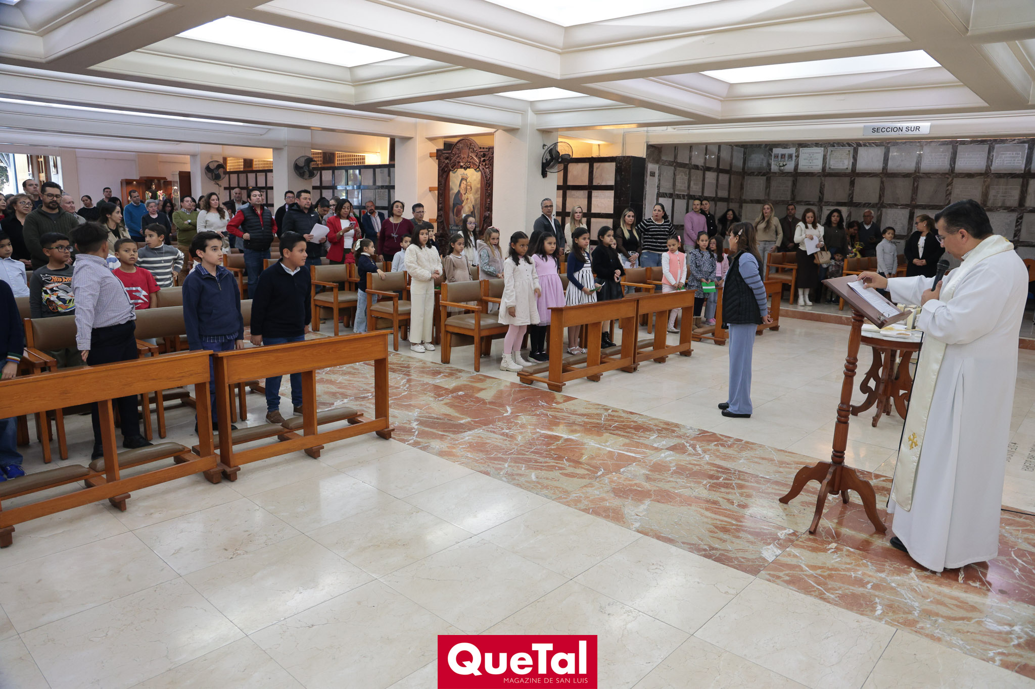 En un emotivo acto lleno de fe y esperanza, los niños que se preparan para recibir el Sacramento de la Primera Comunión participaron en la ceremonia de entrega de la Biblia, el rosario y las semillas que utilizarán en esta significativa etapa de su formación cristiana. Los niños fueron acompañados por sus papás y padrinos en este momento que marca un paso importante en su preparación espiritual. En esta misión, los padrinos asumen un papel fundamental, acompañándolos como guías y ejemplo de vida cristiana, brindándoles apoyo y orientación en su crecimiento en la fe. Los pequeños reciben la preparación para la Primera Comunión de la Maestra Gaby Enríquez.