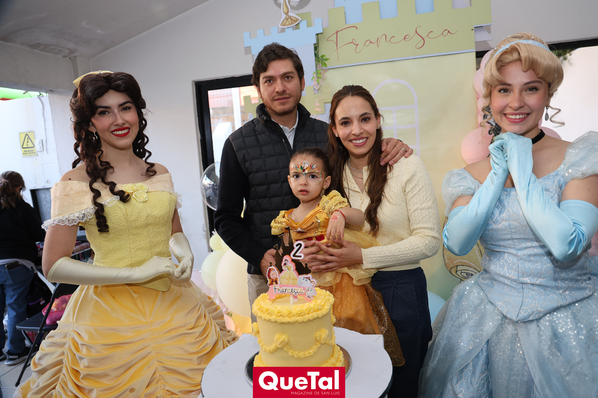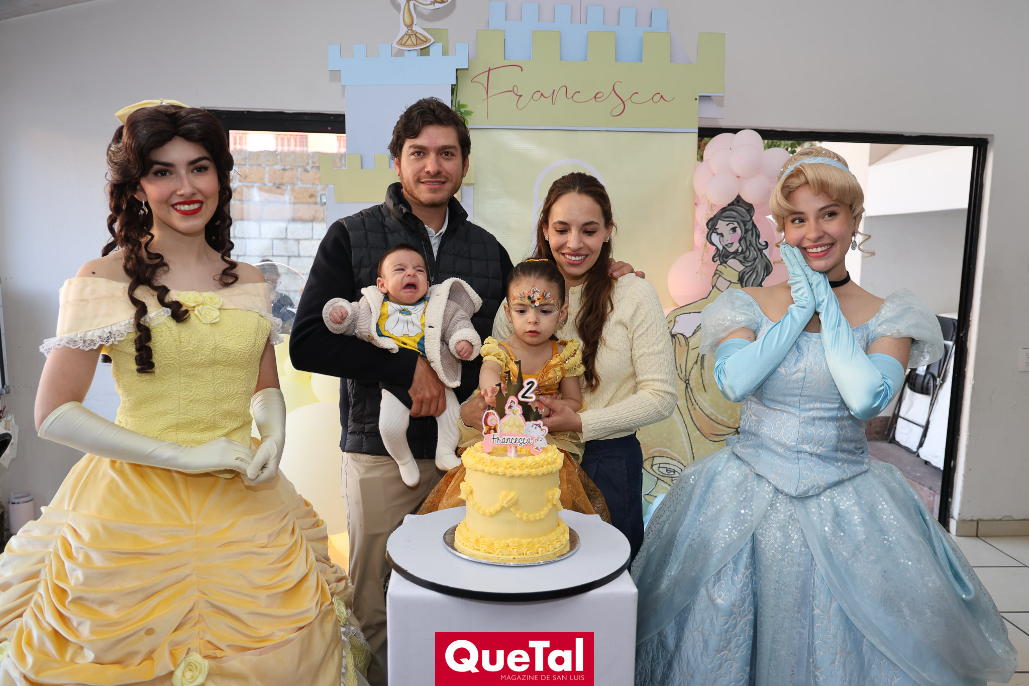 Andrew Delgado y Fernanda Paredes papás de Francesca le festejaron con muchas sorpresas su cumpleaños número 2, con temática de princesas, Francesca se vistió de Bella, para después llegar la piñata y cerrar con las mañanitas y el rico pastel de Bella.