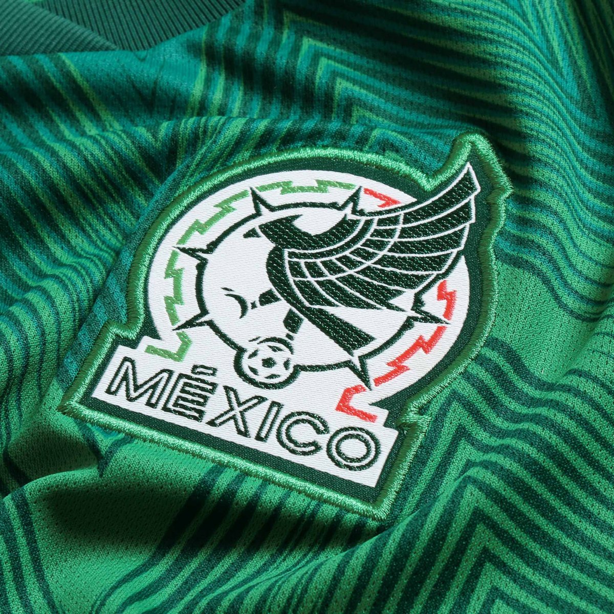 El cuello en V y los ribetes rojos en las mangas hacen referencia directa a la bandera nacional, mientras que el escudo de la Federación Mexicana de Fútbol aparece en el pecho, del lado izquierdo, y el logo de la marca alemana Adidas está en el derecho. El conjunto parece retomar el estilo retro-modernista de los años setenta y ochenta, como el usado por el Tricolor en el Mundial de Argentina 1978.
