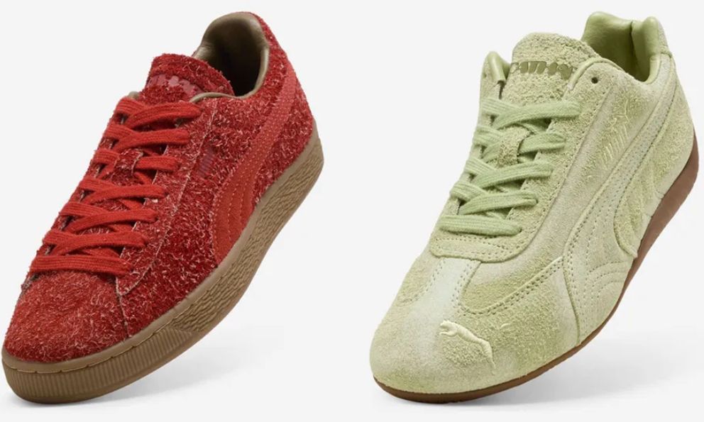 Los Puma Speedcat, por su parte, se presentan en un sutil color verde que recuerda al musgo o a la piedra lavada. También en este caso, el ante lavado crea un aspecto desgastado que hace que el par clásico del automovilismo parezca sorprendentemente tranquilo.